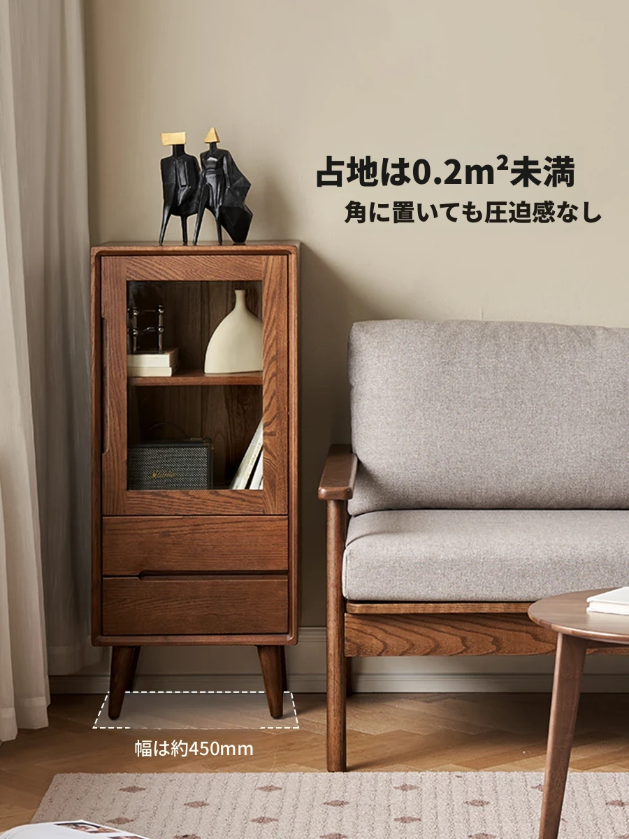 北欧スタイルのオーク無垢材製ワインキャビネット - シンプルなデザインのリビング用ディスプレイキャビネット A1101。おしゃれなインテリアでお部屋を彩ります。