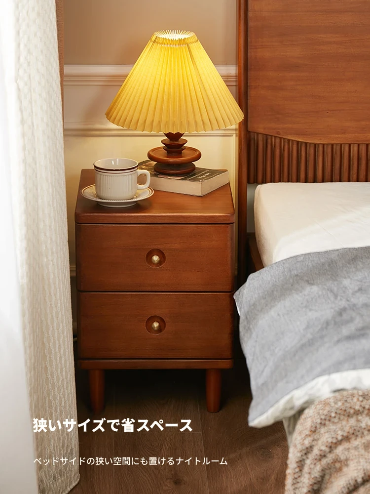 オーガニック素材の無垢材製ベッドサイドテーブル—モダンでシンプルなデザイン、小型住宅に最適。さくらんぼの木の収納庫 K9021で居心地の良い寝室を演出!