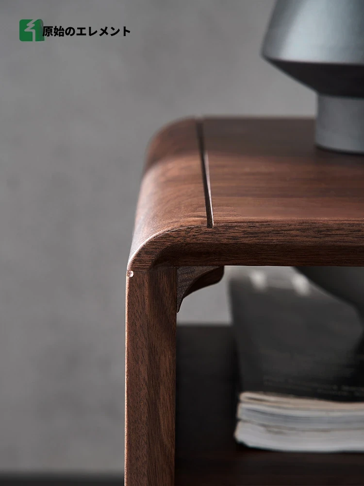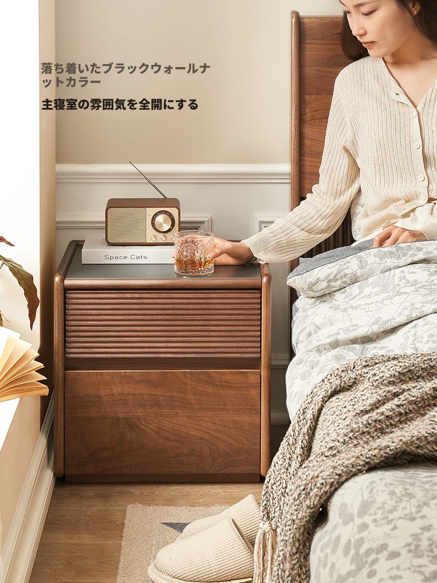 オリジナルエッセンス!ブラックウォールナット色の無垢材ナイトテーブル - 北欧モダンシンプルデザイン、オーク製収納キャビネットA3021。おしゃれで機能的な収納で、あなたの寝室をスタイリッシュに演出します!