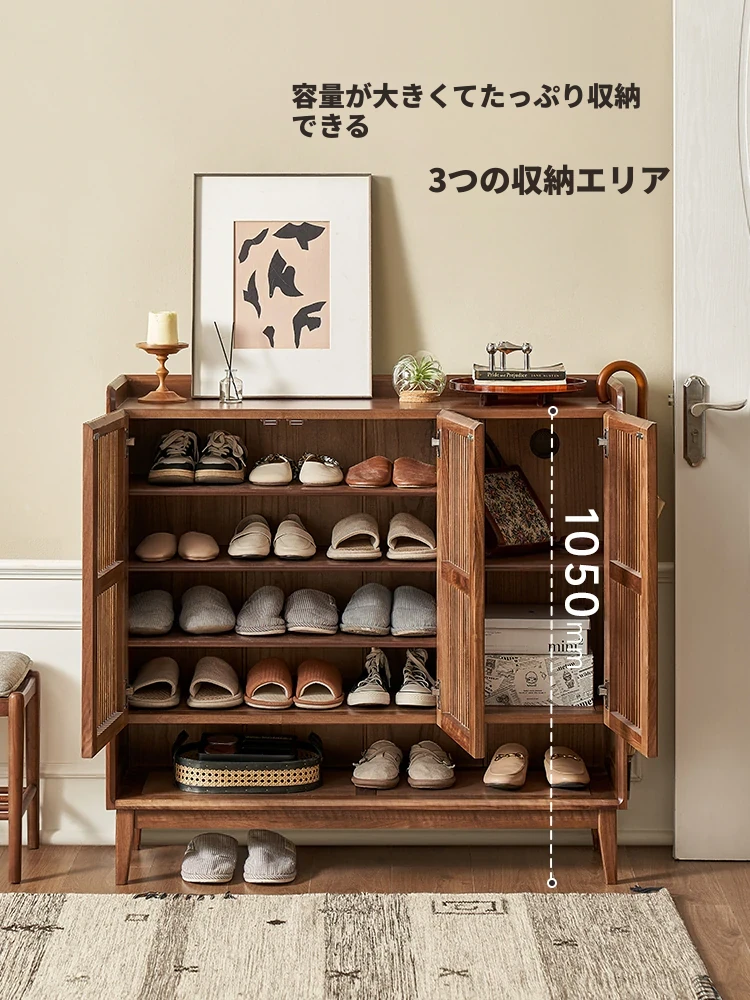 オリジナルエレメント全て本物の無垢材使用!モダンでラグジュアリーな北米産ブラックウォールナットの靴箱。家庭用玄関ロビー用の間仕切り収納家具B5094で、おしゃれな空間を演出しましょう!