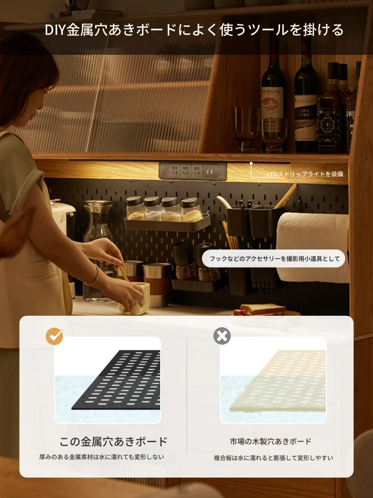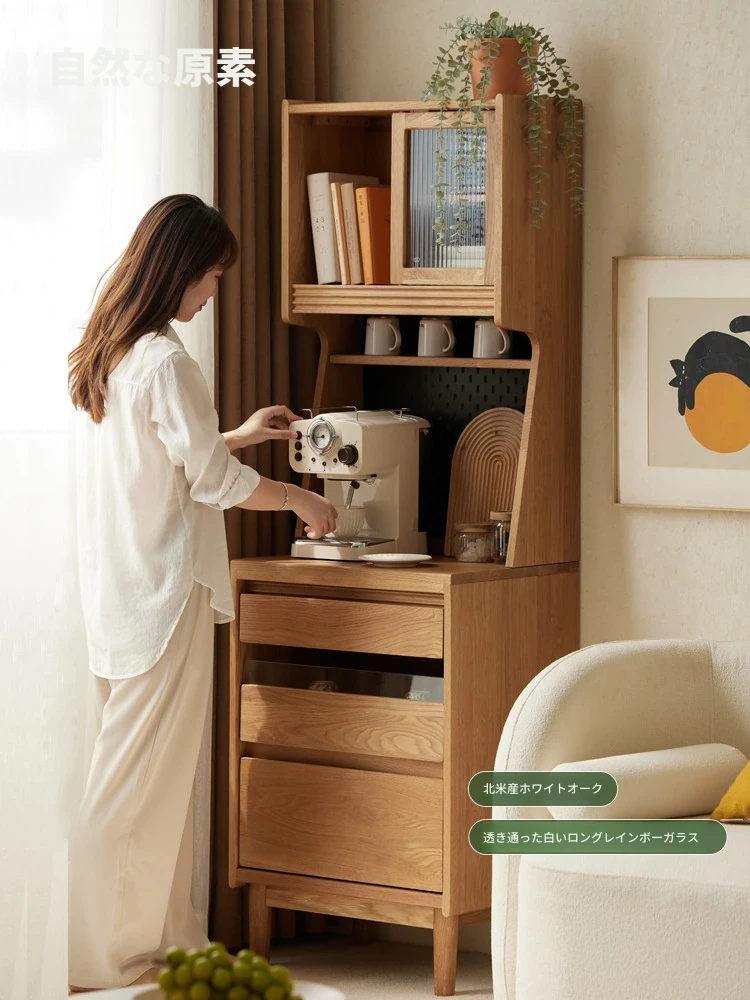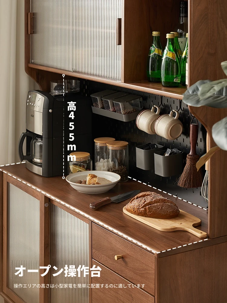 実木製のダイニングサイドキャビネット|小型住宅向け|キッチンにぴったりの多機能収納キャビネットL8142|スタイリッシュで実用的な収納ソリューション!