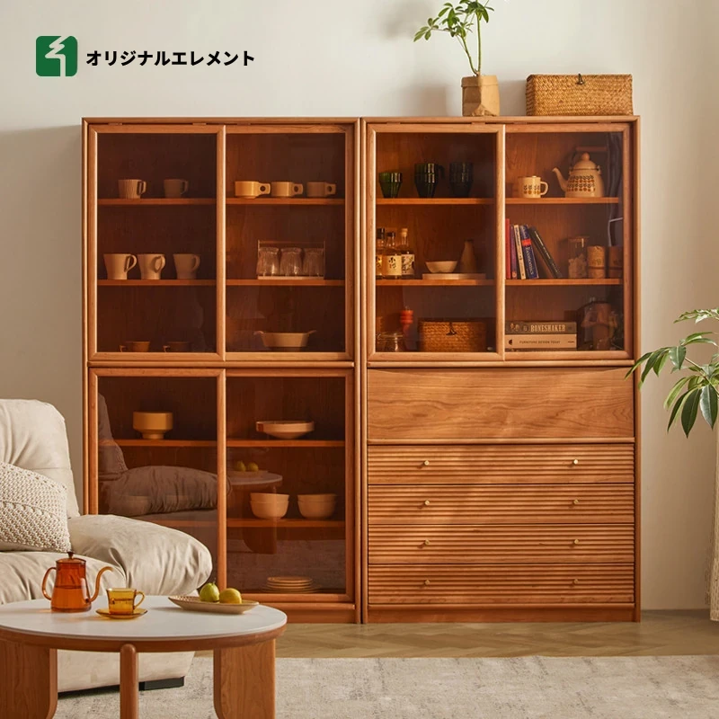 オリジナルエレメント天然木組み合わせキャビネット 食卓サイドキャビネット ディスプレイキャビネット チェリーウッド収納キャビネット 北欧スタイル書棚 L9171 - シンプルで洗練されたデザイン、収納力抜群でお部屋を美しく演出!