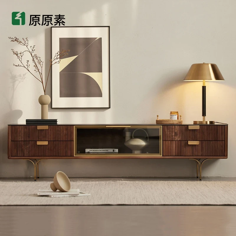 オリジナル素材の無垢材テレビサイドキャビネット - オーク&ウォールナット色、現代的でシンプルなデザインのリビングストレージキャビネットA1101。おしゃれで機能的、あなたのインテリアにぴったり!