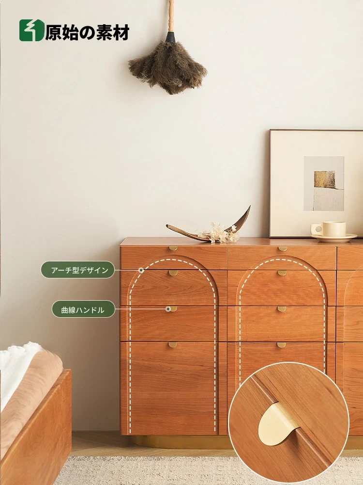 原始の原素 フルウッド ベッドサイドキャビネット 北米チェリー材を使用した収納力抜群のモダンラグジュアリー 夢のような寝室空間を演出するL2022