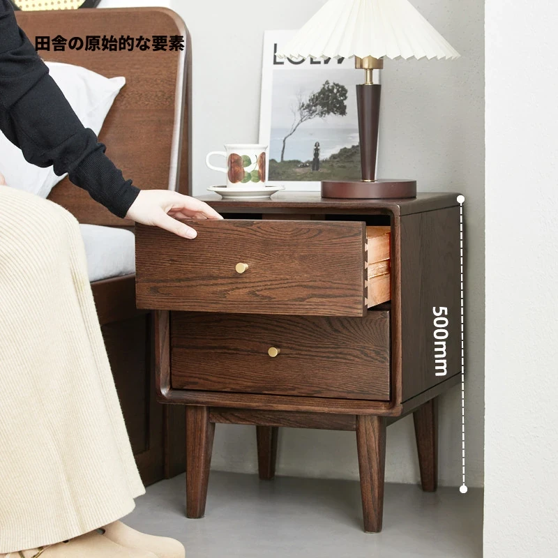 オーガニック無垢材の現代的シンプルデザイン ナチュラルオークベッドサイドキャビネット K7023 - 小さな部屋にぴったりの収納力で、洗練された空間を演出します!