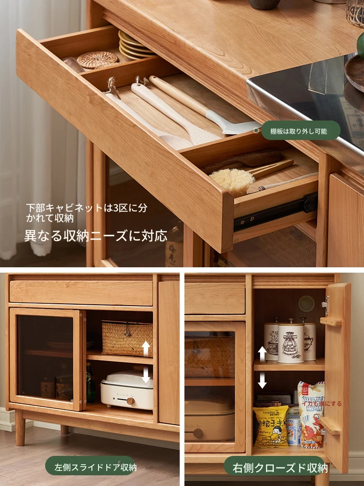 オリジナルエッセンス 全実木製 レトロチェリーウッド キッチンストレージキャビネット 大容量 サイドボード L5141 - おしゃれなインテリアで、収納力も抜群!