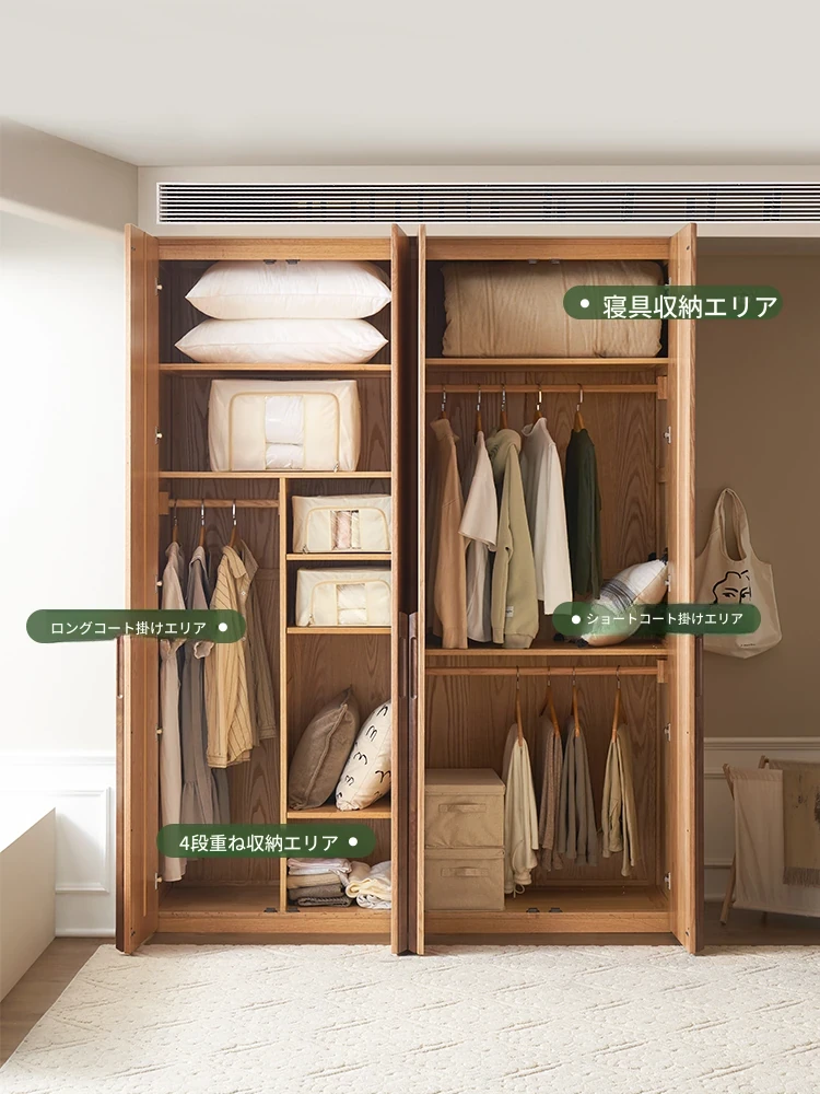 ナチュラルオークの無垢材を使用した高品質クローゼット!シンプルで上品なデザイン、寝室にぴったりの天井までの収納力。おしゃれなL7041モデルで、お部屋をスッキリ整理整頓。洗練された空間を実現しましょう!