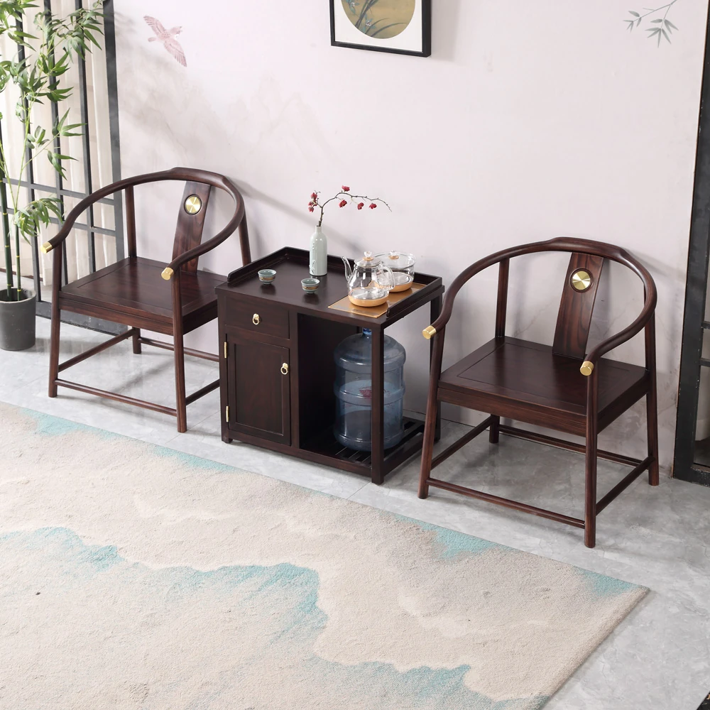 新中式全実木製金花梨の収納ティーキャビネット&サイドテーブルセット - 優雅なデザインで、茶の時間を特別に演出!サイドテーブルと湯沸かし器一体型で、機能性も抜群!