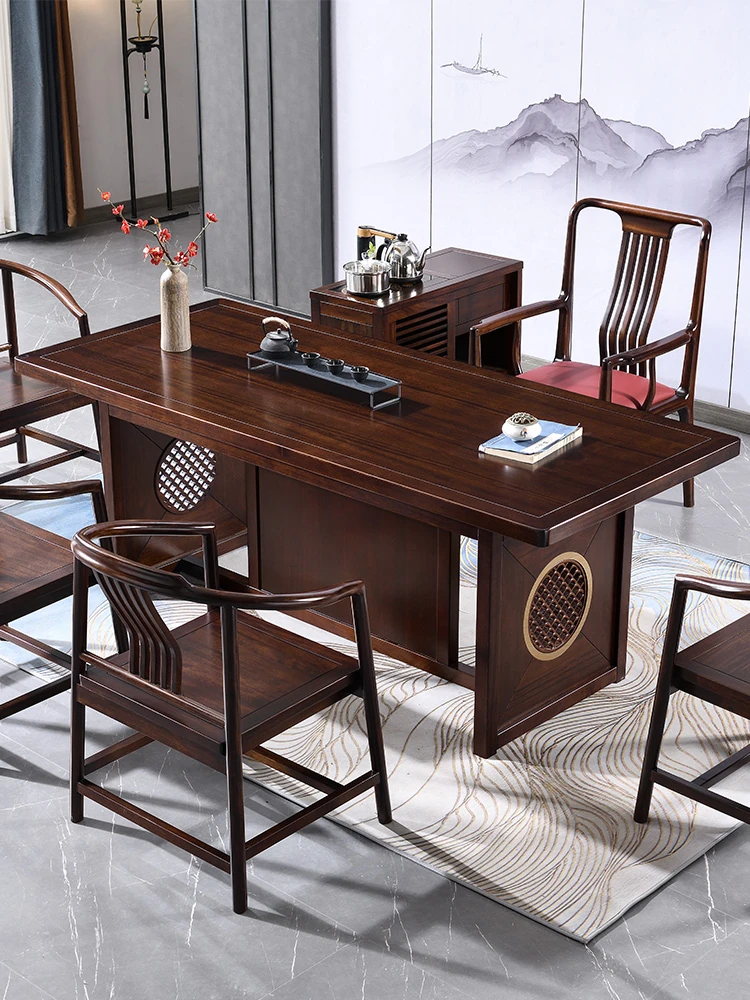 新中式ウッドテーブルセット - 高級感溢れる天然ウッド製の茶卓と椅子の組み合わせ!家庭やオフィスに最適なデザインで、スタイリッシュなライフスタイルを演出します。軽やかな贅沢を感じる、上質なひとときをお楽しみください。