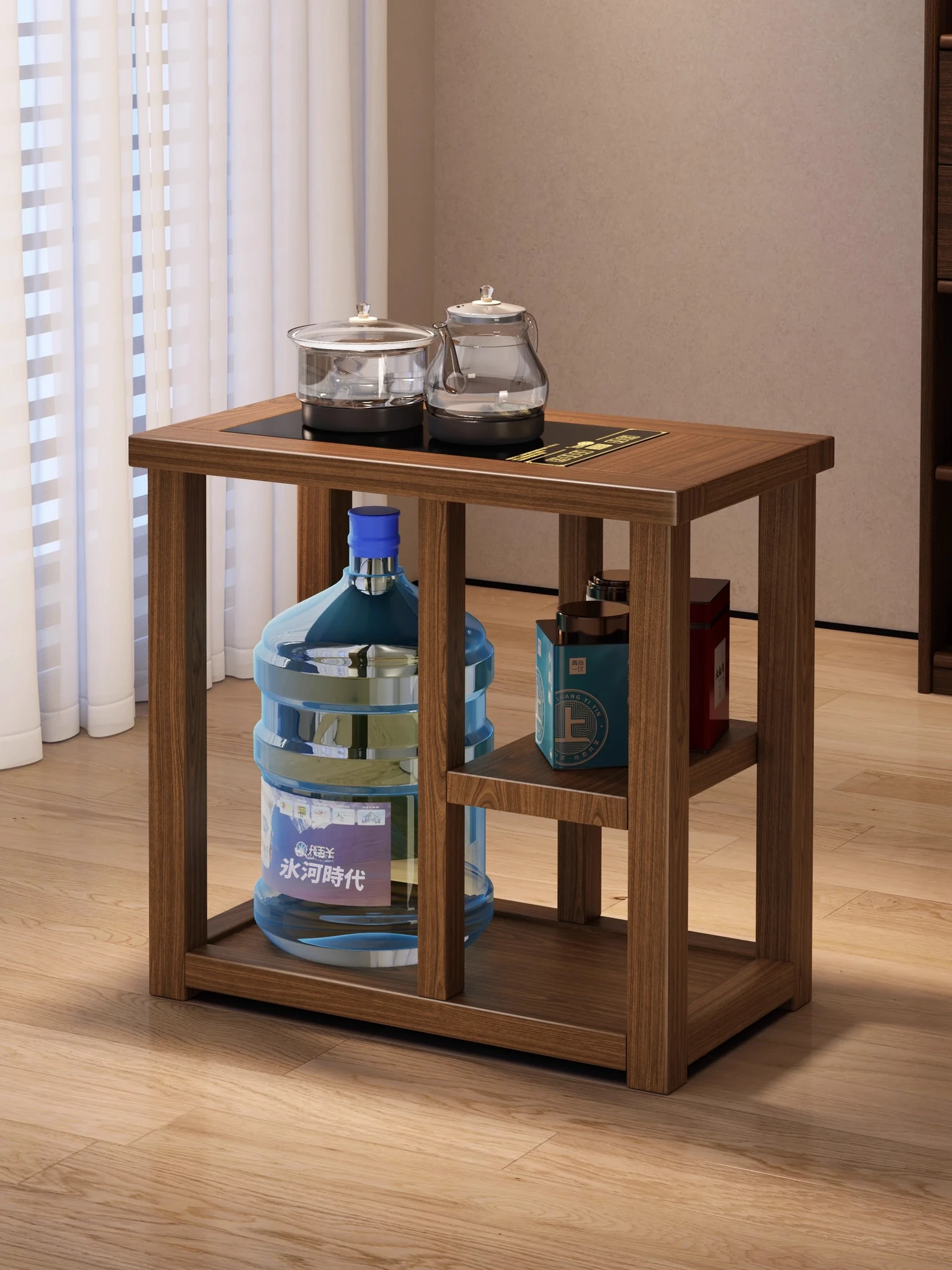 新中式木製ティーキャビネット 小型シンプルティーテーブル ボトル付きの一体型ティーテーブル 簡約な茶道具に最適!心を和ませるお茶の時間をお楽しみください。