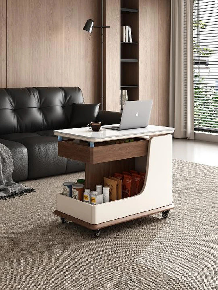 モバイルスタイルの昇降式ローテーブル - 現代的なライトラグジュアリー、多機能サイドテーブル&キャビネット、キャスター付き収納ソファサイドテーブル!快適な空間を演出する必需品!