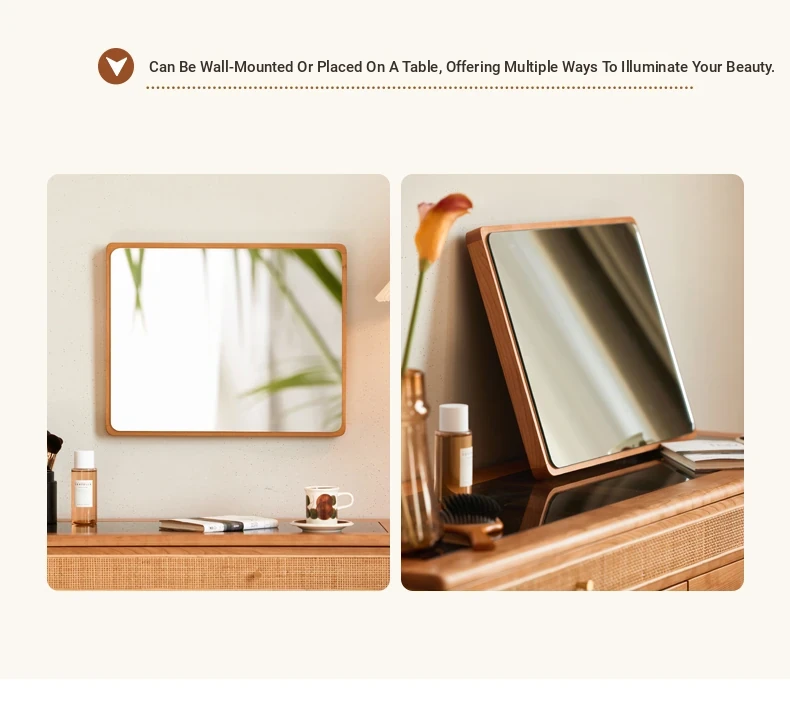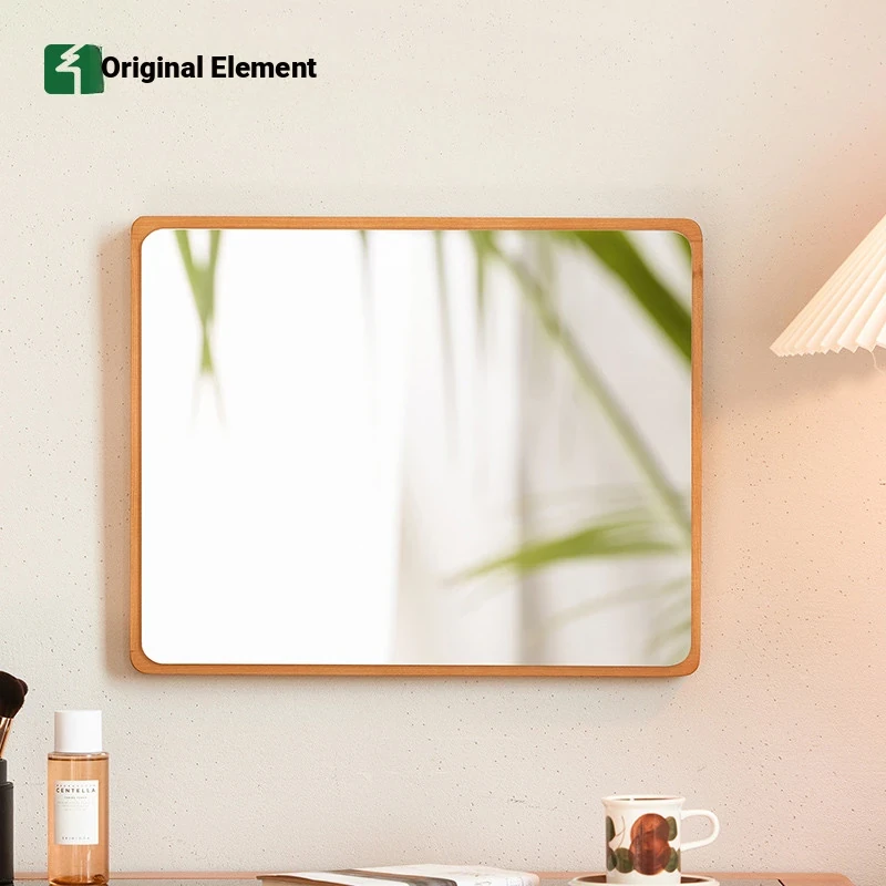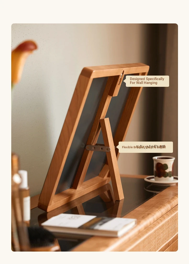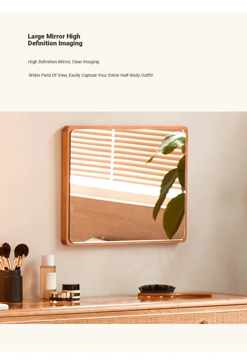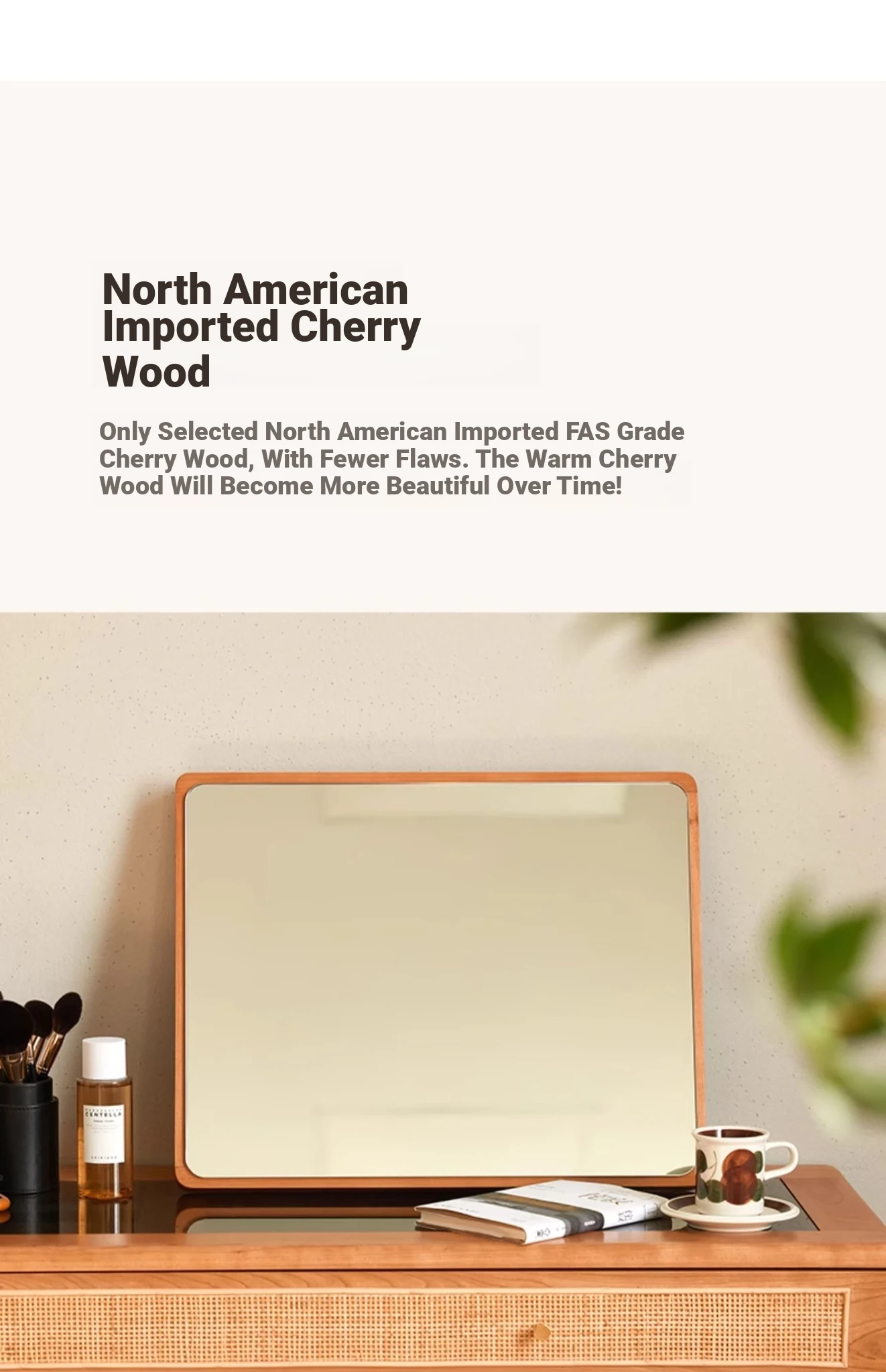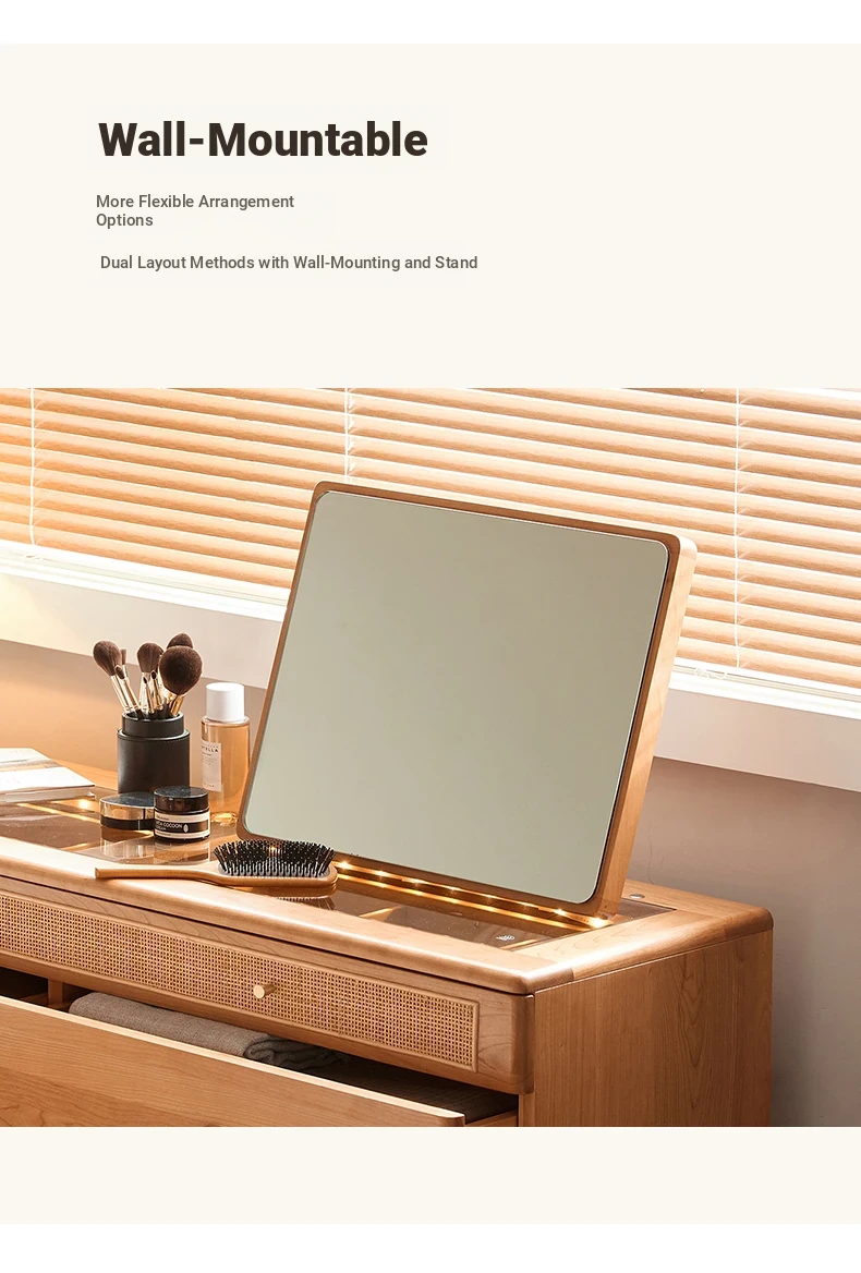 Original Element Solid Wood Vanity Mirror - Nordic Cherry Wood Makeup Table Square Mirror K9051 - Elevate Your Beauty Routine with Elegant Design and Premium Craftsmanship