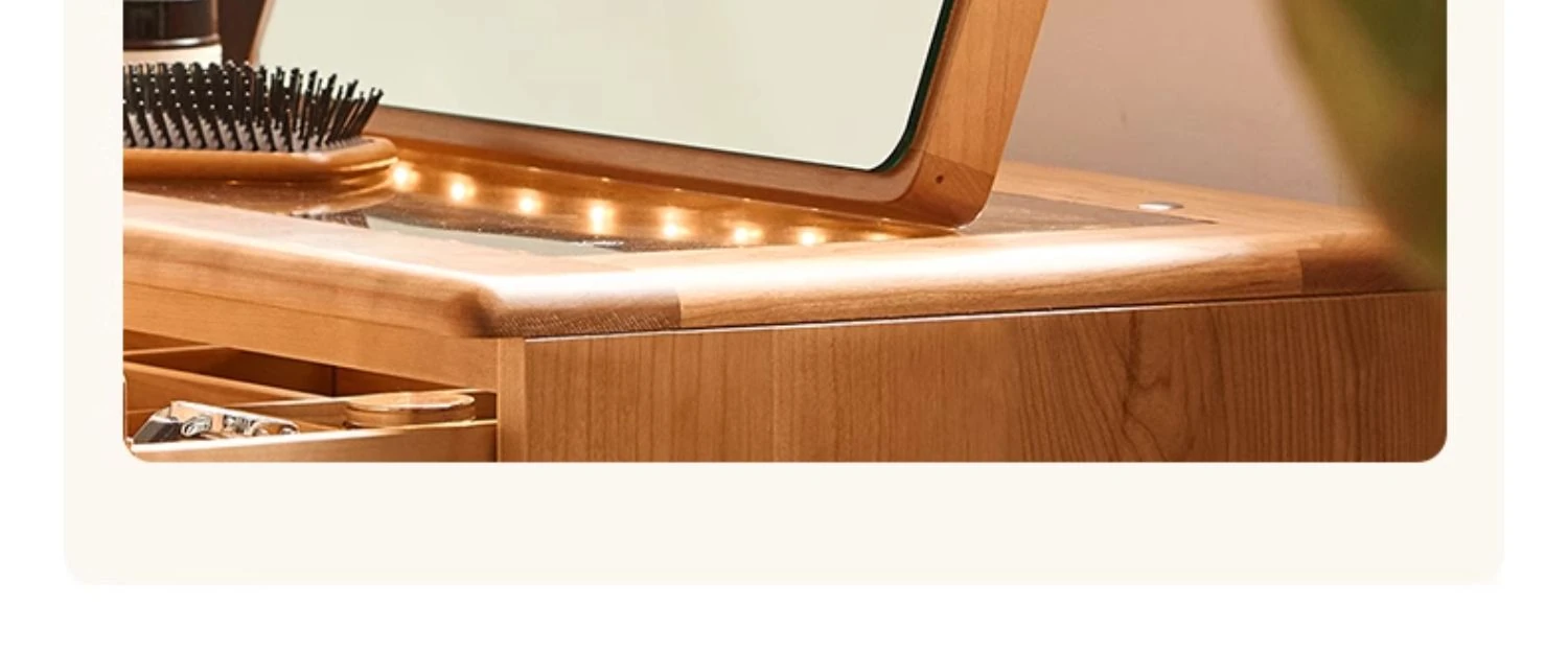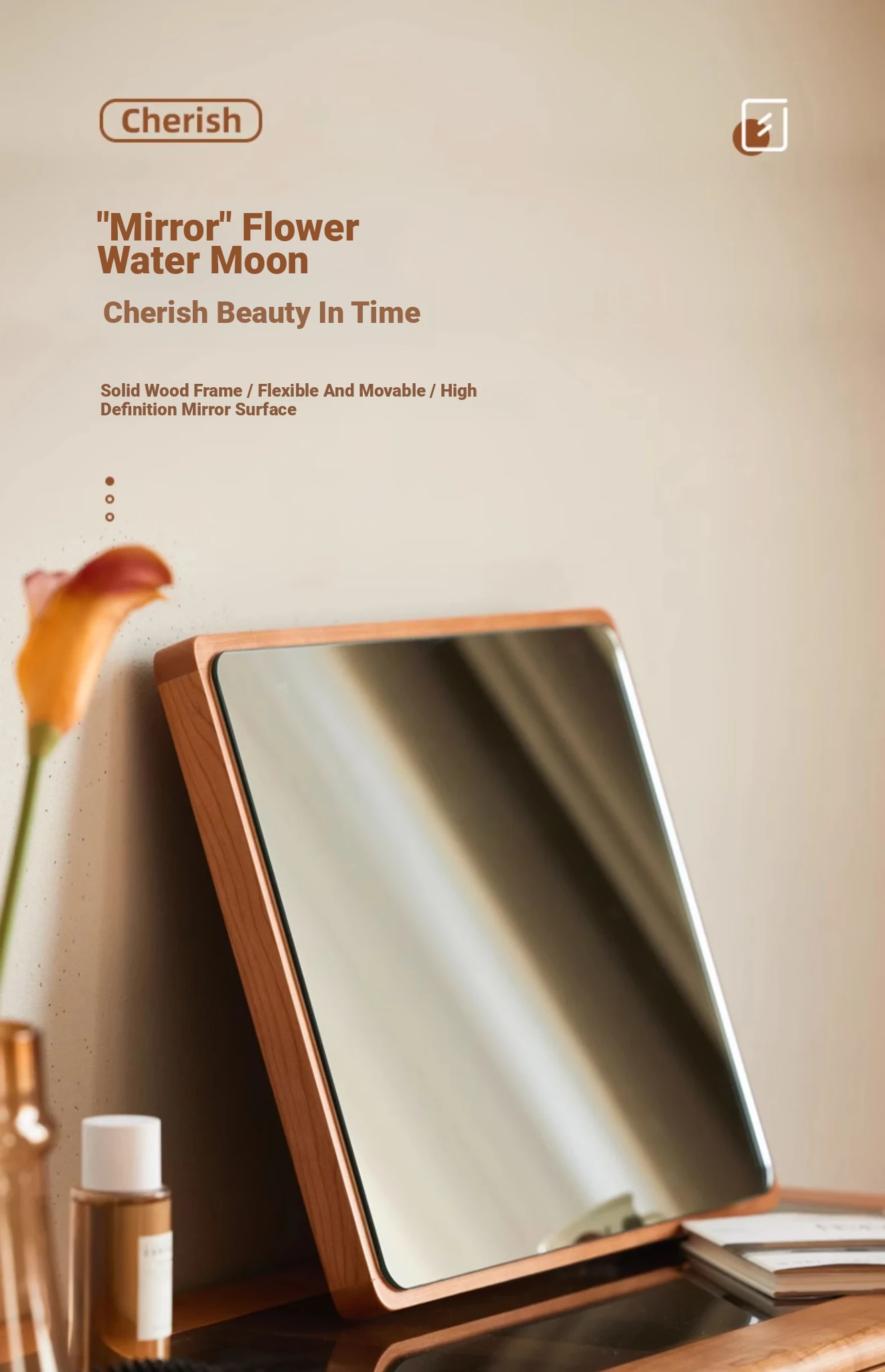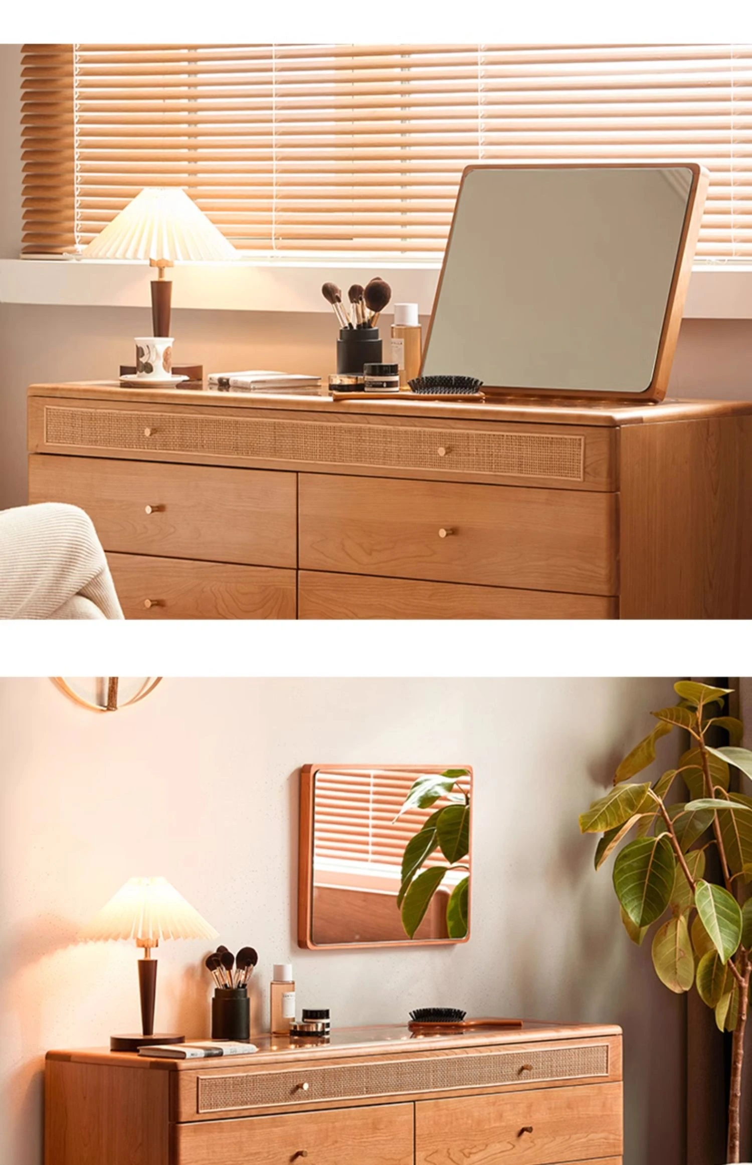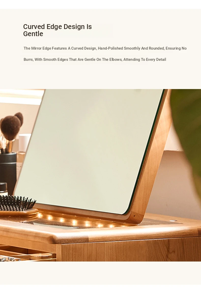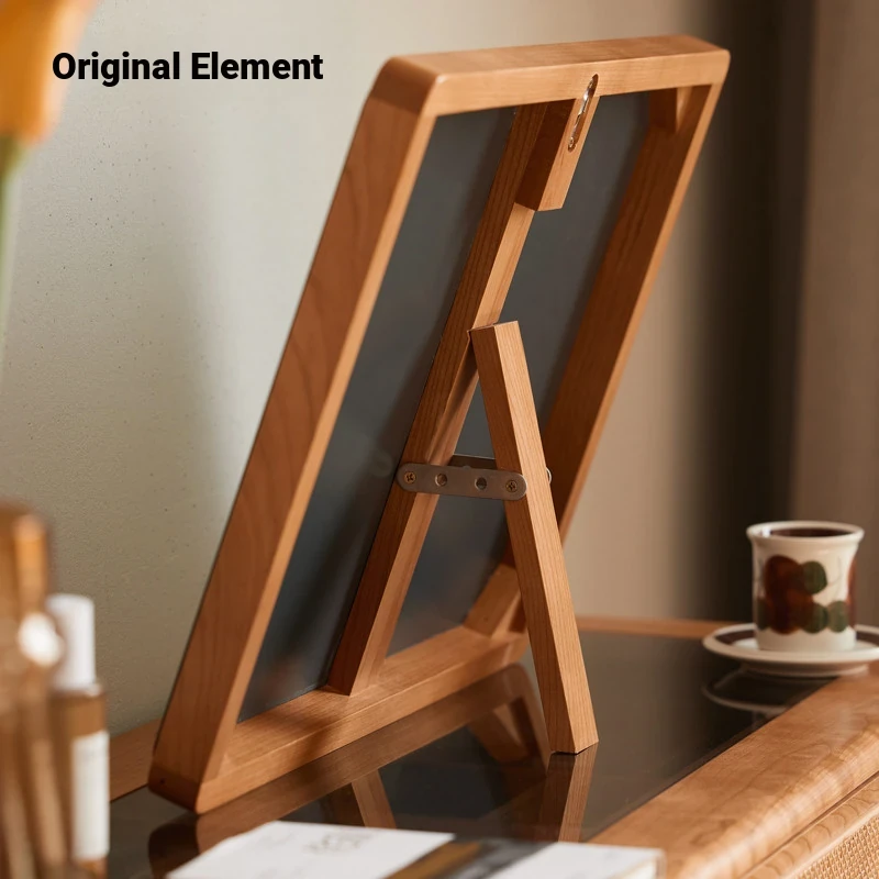 Original Element Solid Wood Vanity Mirror - Nordic Cherry Wood Makeup Table Square Mirror K9051 - Elevate Your Beauty Routine with Elegant Design and Premium Craftsmanship