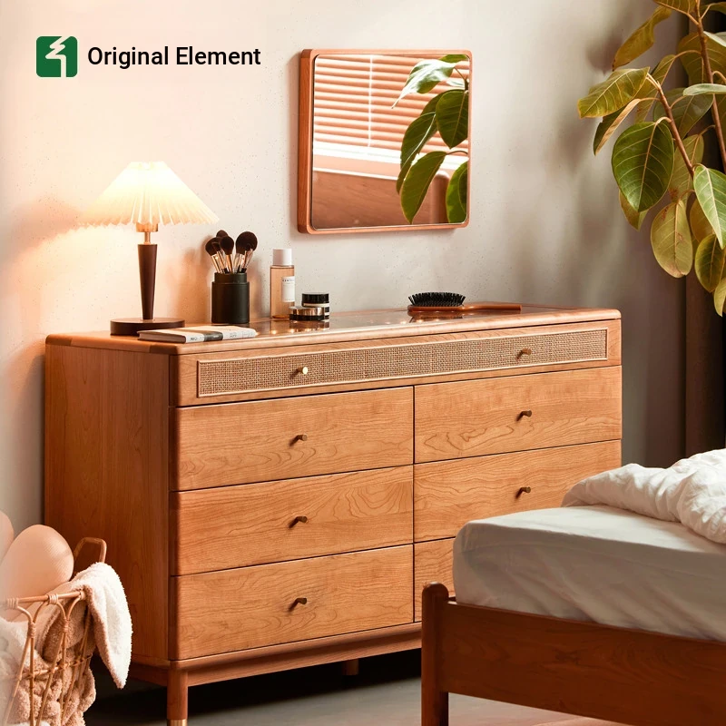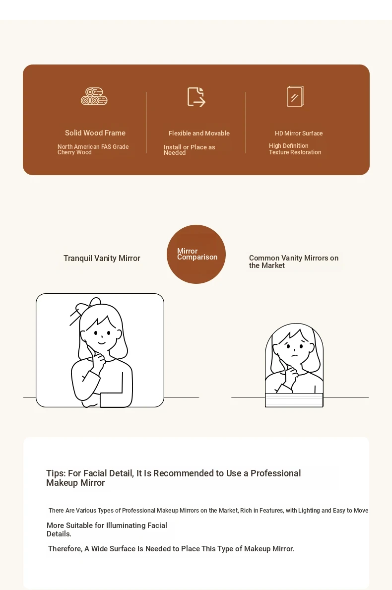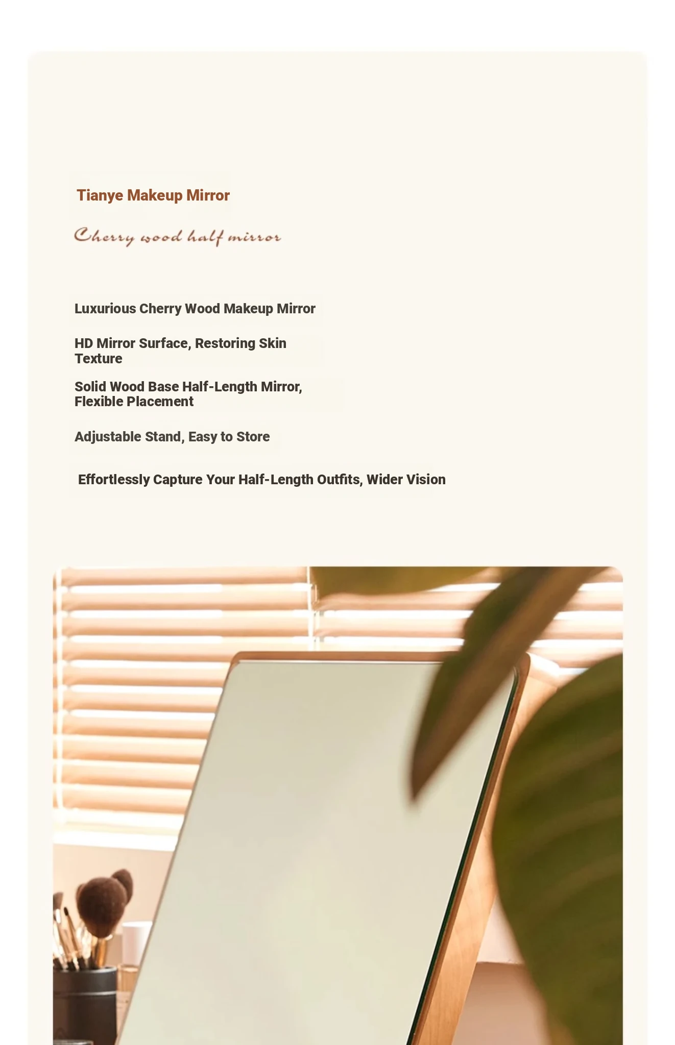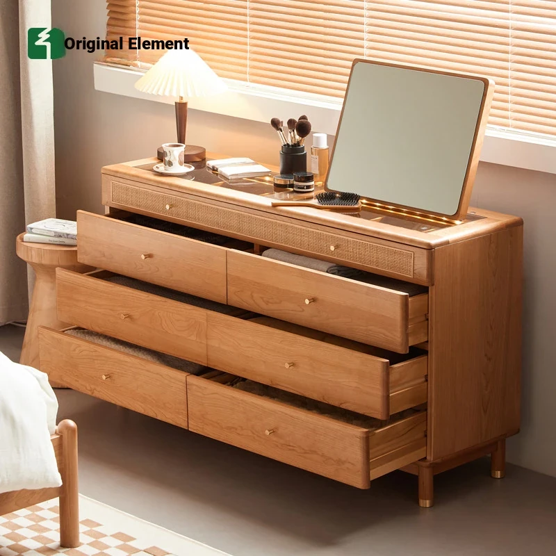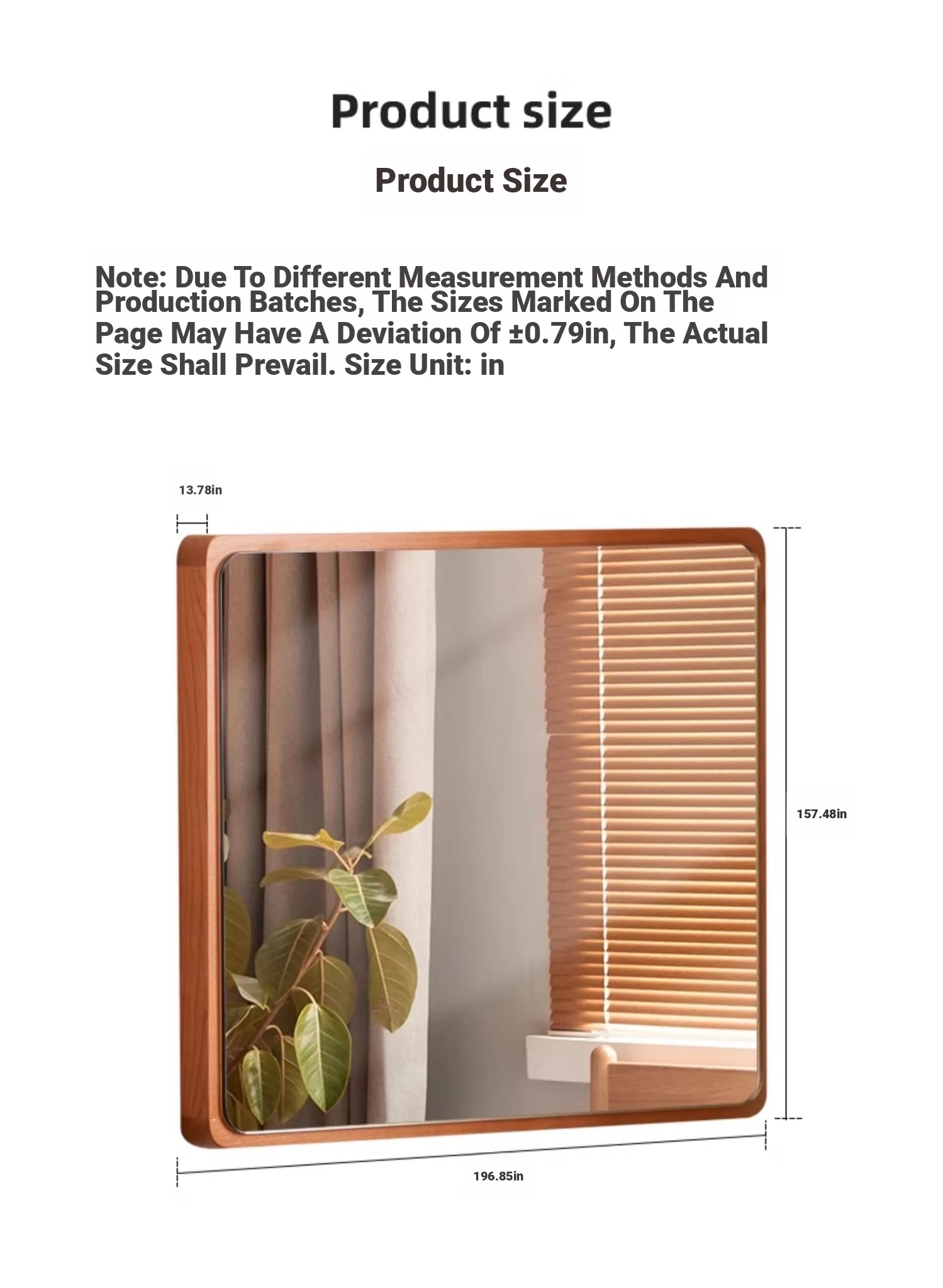 Original Element Solid Wood Vanity Mirror - Nordic Cherry Wood Makeup Table Square Mirror K9051 - Elevate Your Beauty Routine with Elegant Design and Premium Craftsmanship
