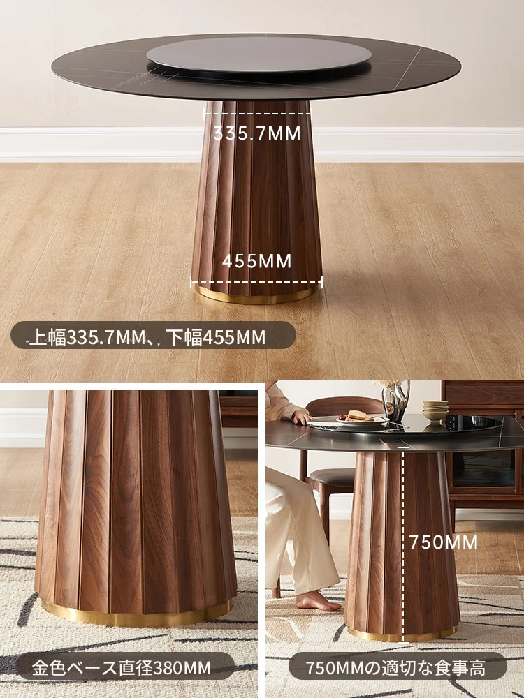 【北米ブラックウォールナット】1.2メートルダイニングテーブル(ブラックストーン)(円盤付き)(1200*1200*750mm)