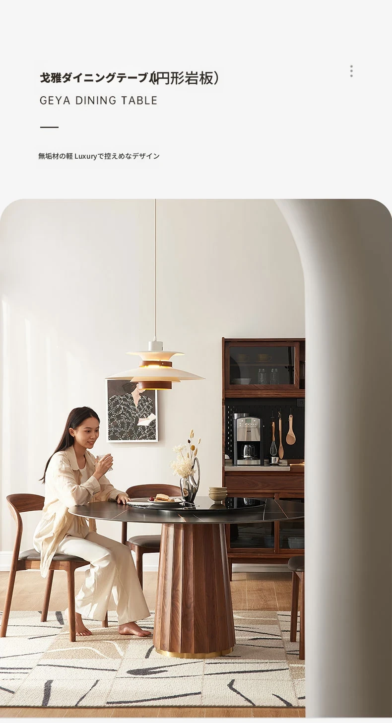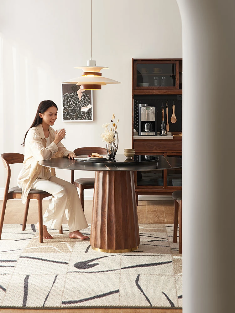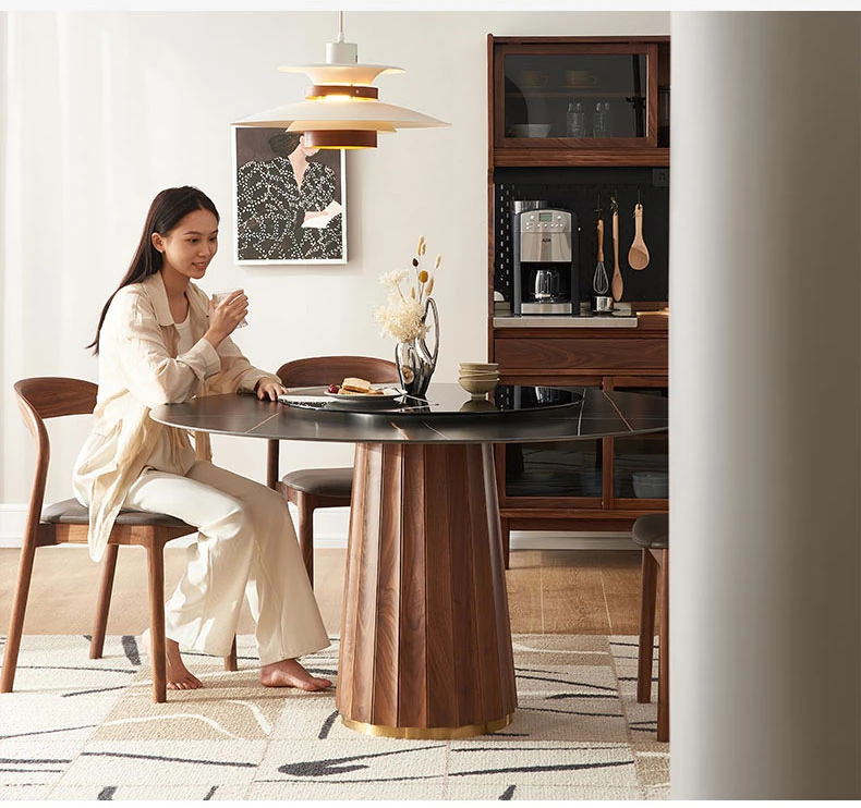 北米産ブラックウォールナット使用!オシャレな無垢材ラウンドダイニングテーブル・エレガントなデザインで軽やかな食卓を演出。M1114 - 家庭向けの食事を贅沢に彩る、理想の一品!