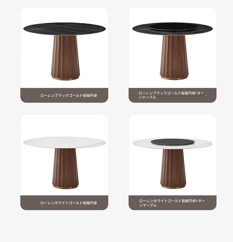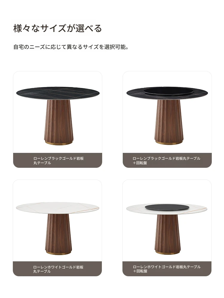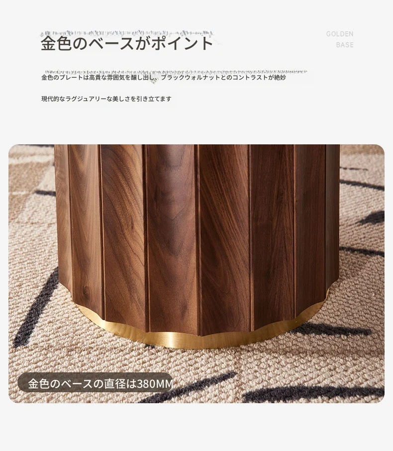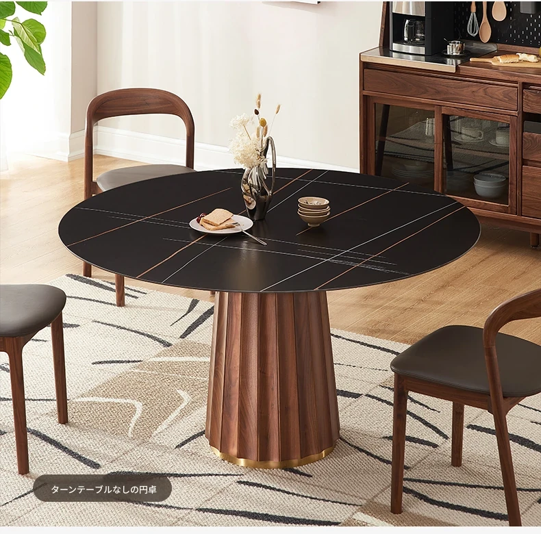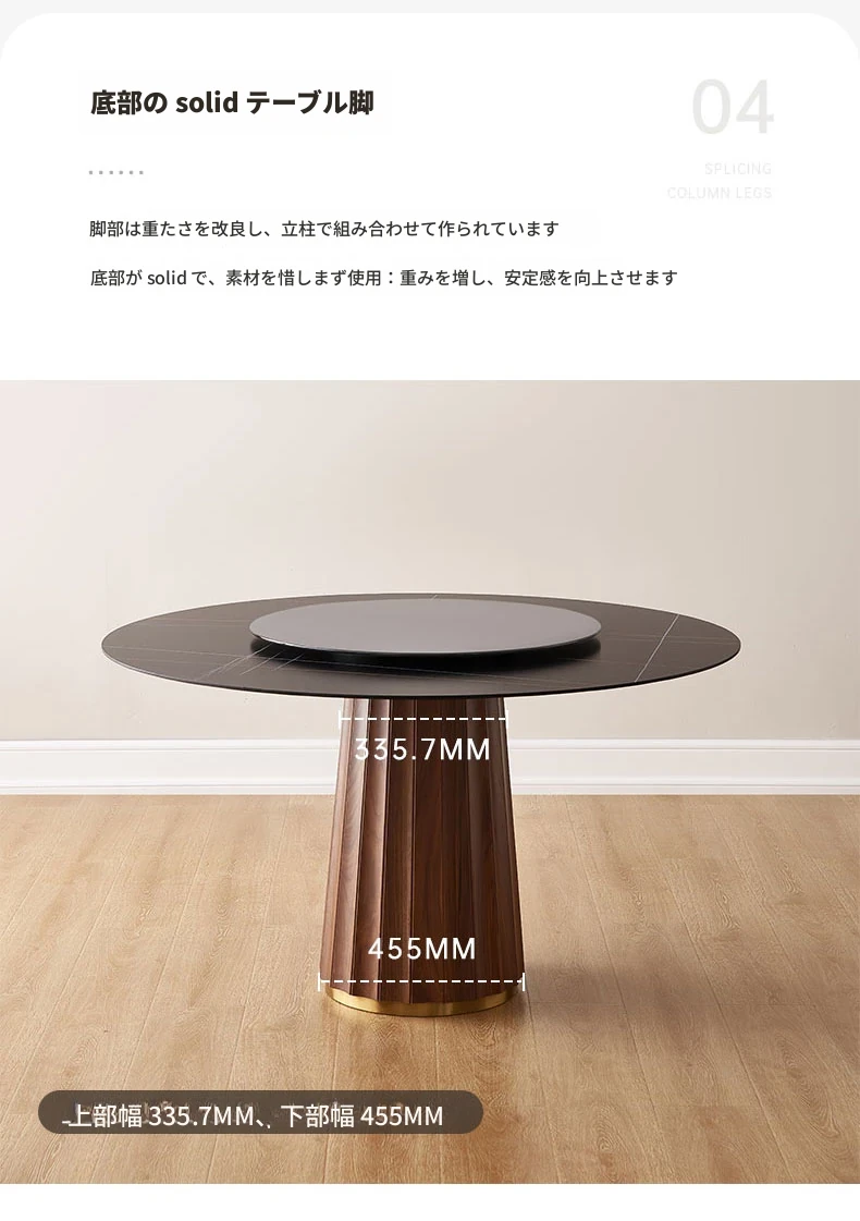 【北米ブラックウォールナット】1.2メートルダイニングテーブル(ホワイトストーン)(円盤付き)(1200*1200*750mm)