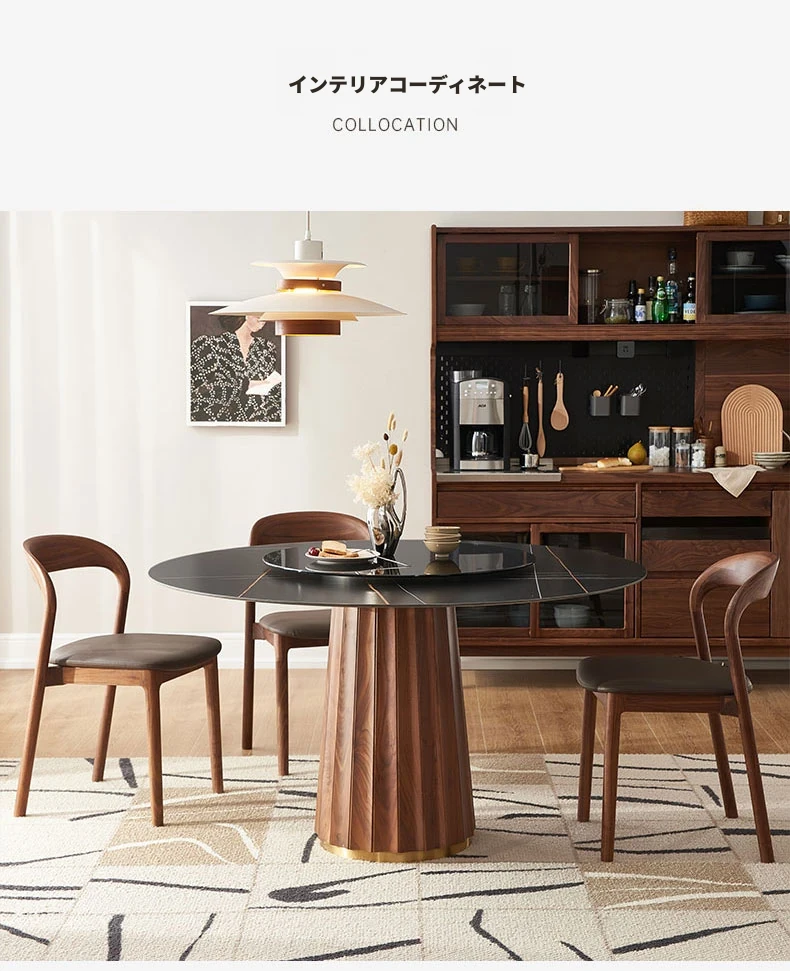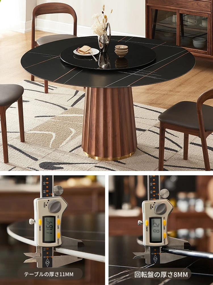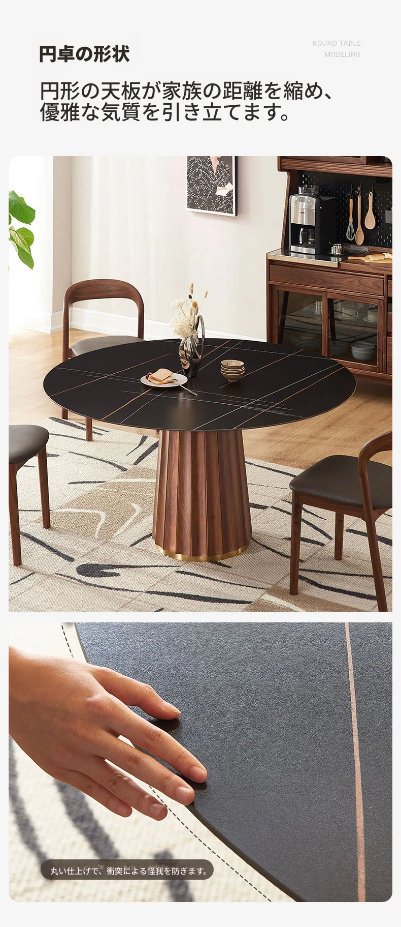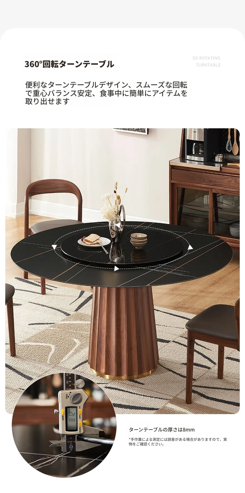 【北米ブラックウォールナット】1.35メートルダイニングテーブル(ブラックストーン)(円盤付き)(1350*1350*750mm)