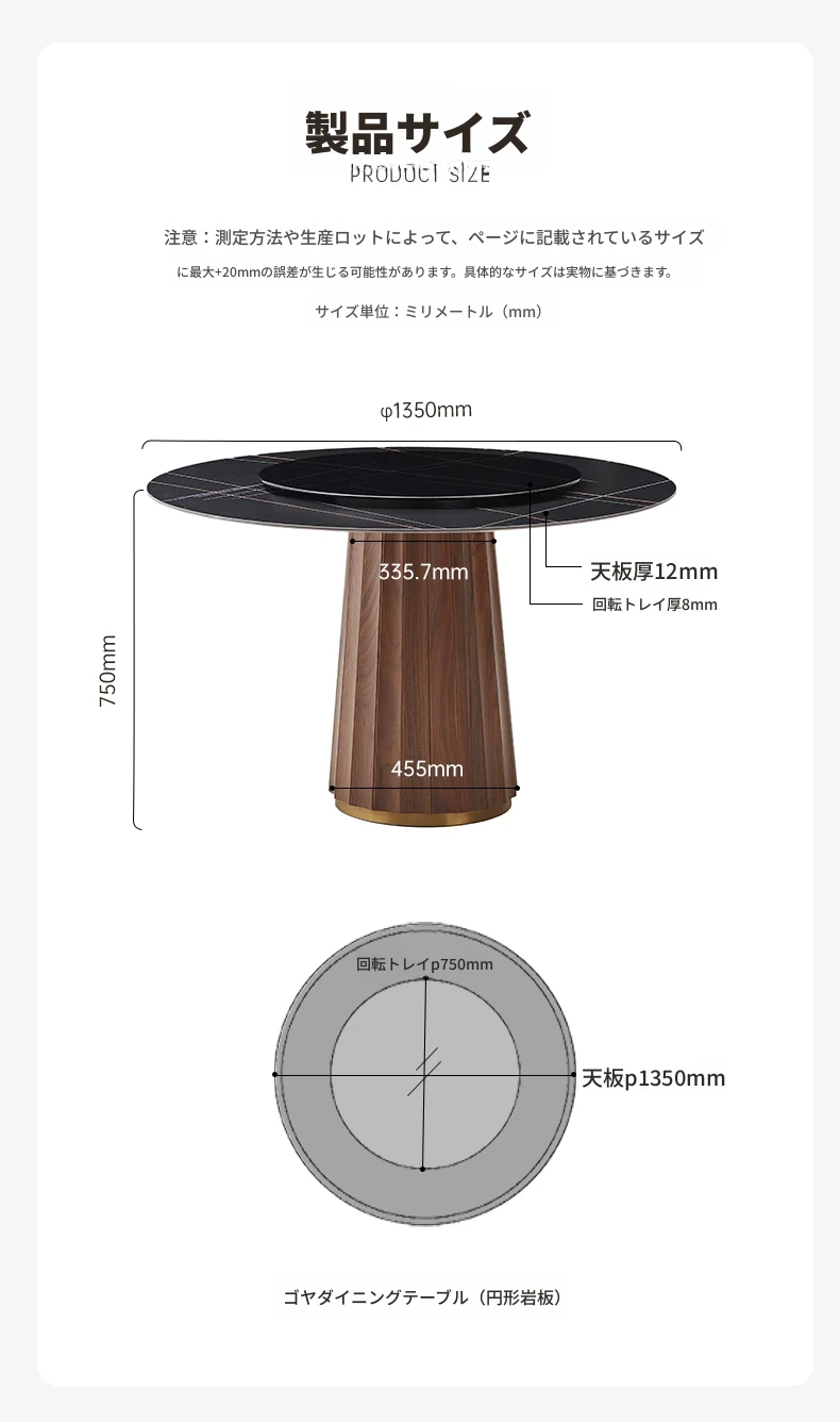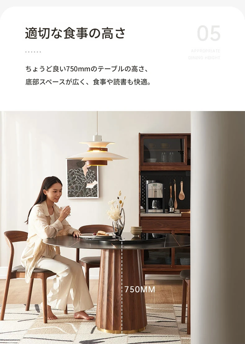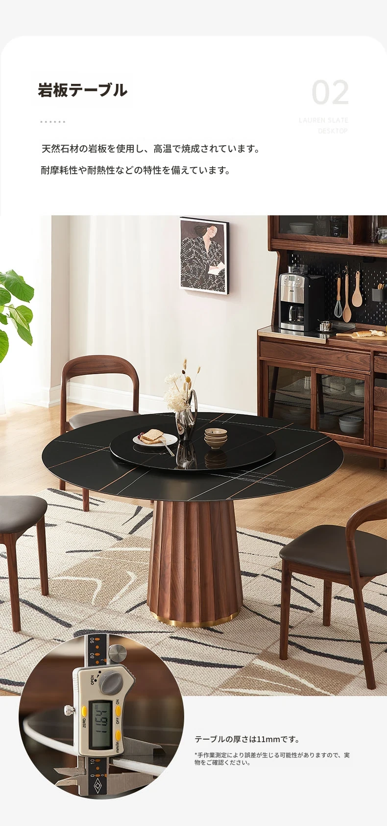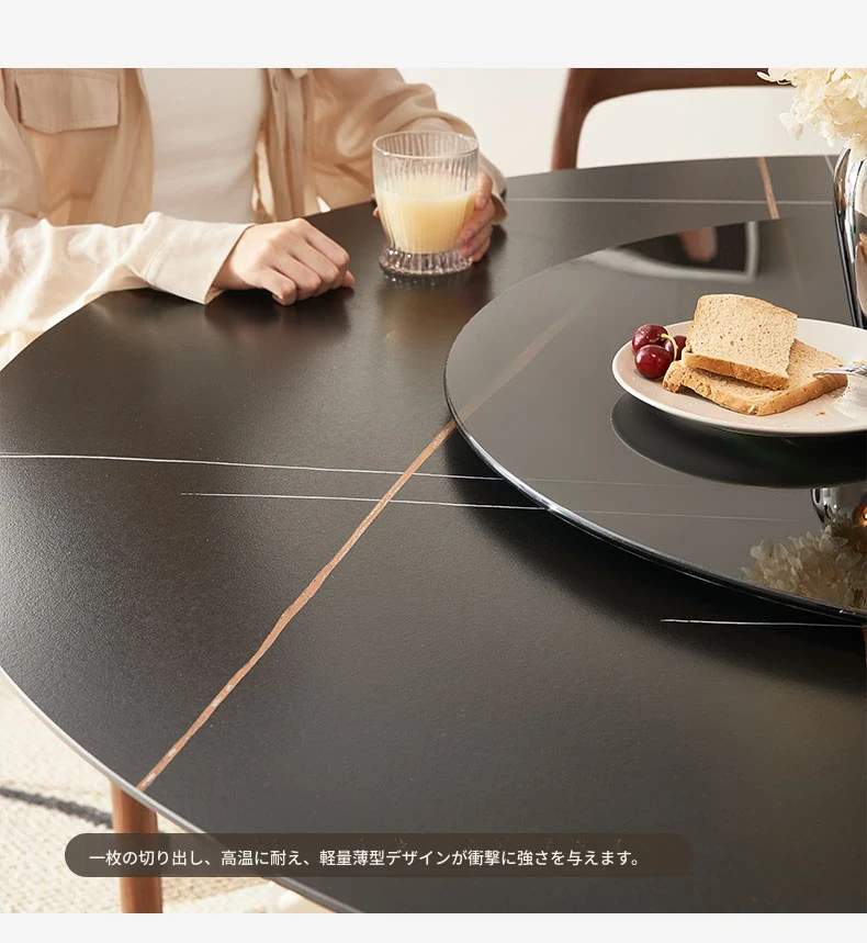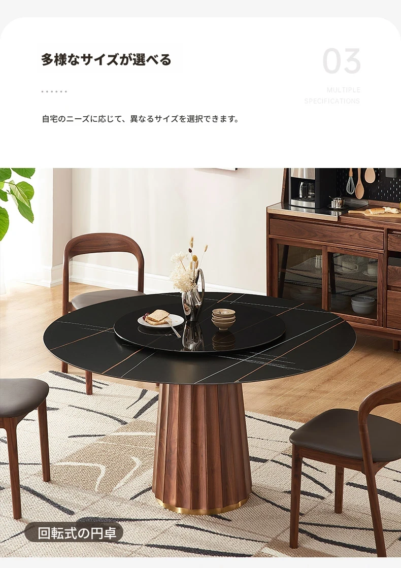 【北米ブラックウォールナット】1.35メートルダイニングテーブル(ブラックストーン)(円盤付き)(1350*1350*750mm)