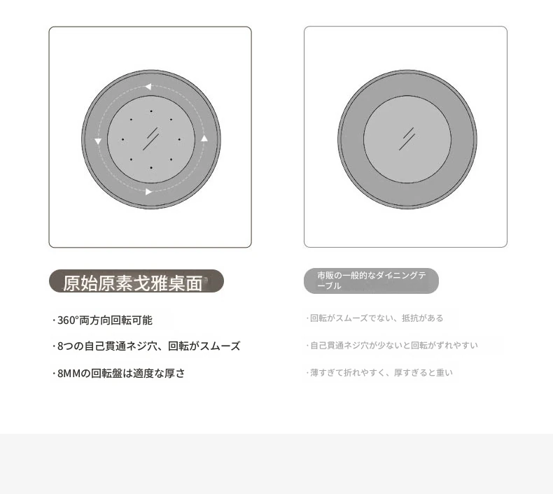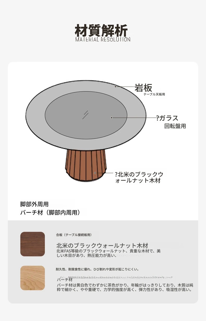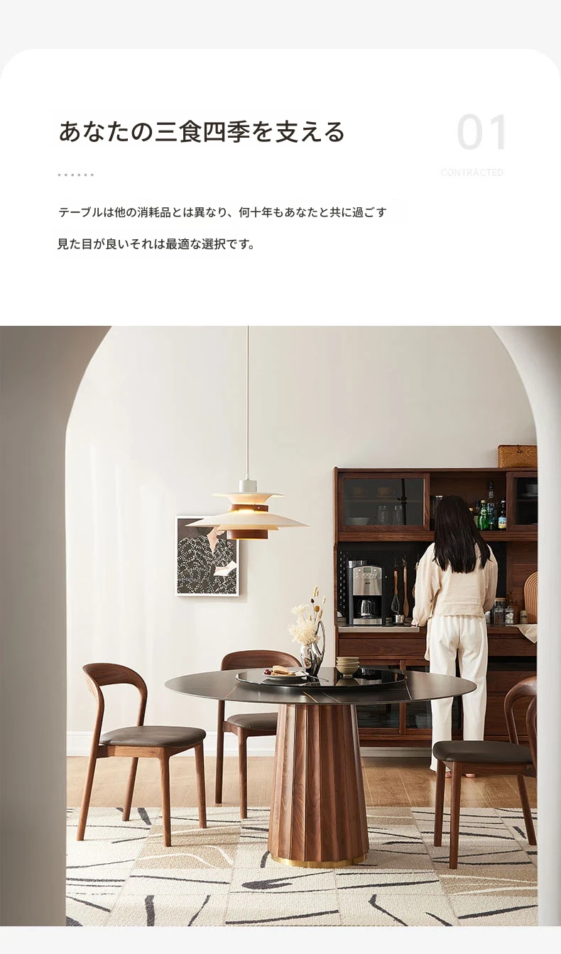 【北米ブラックウォールナット】1.35メートルダイニングテーブル(ホワイトストーン)(円盤付き)(1350*1350*750mm)