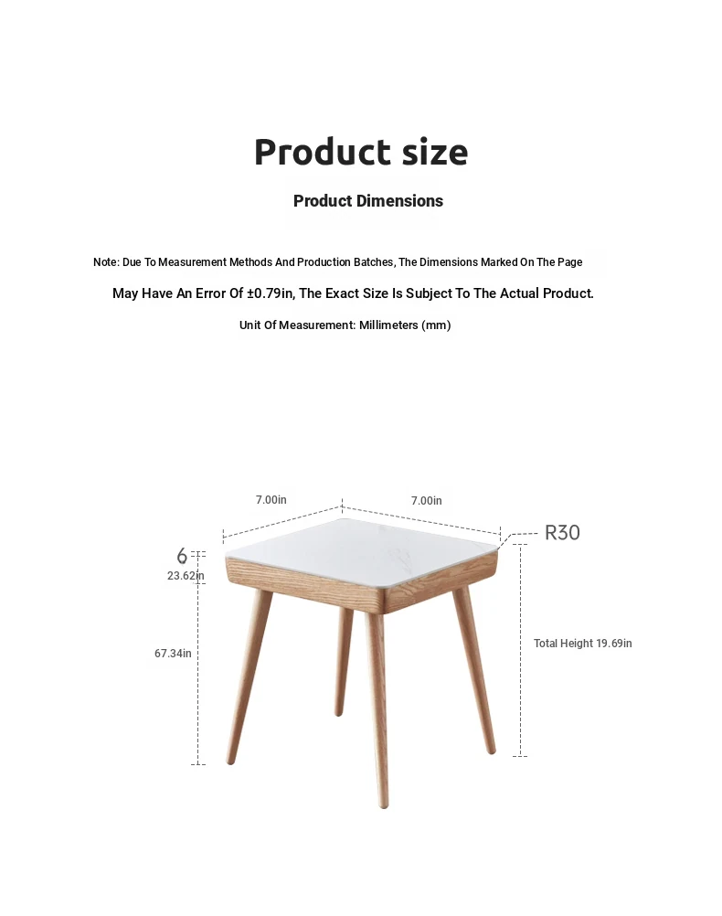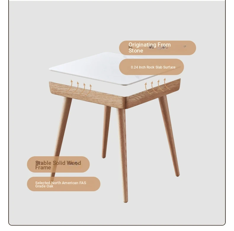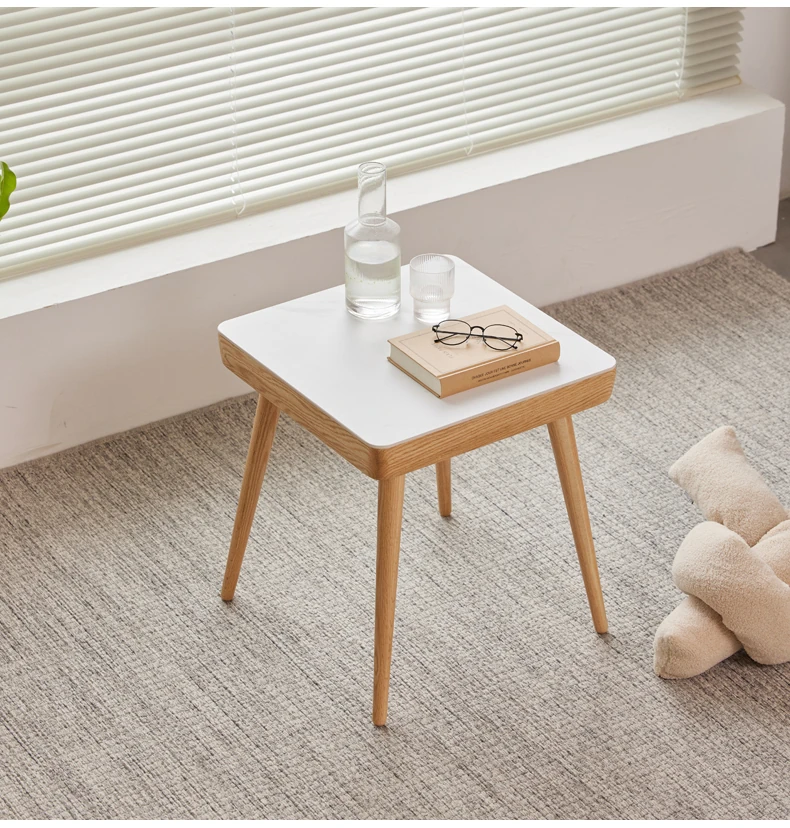岩板サイドテーブル-(450*450*500)-【ナチュラルウッドカラー(魚の腹白)】