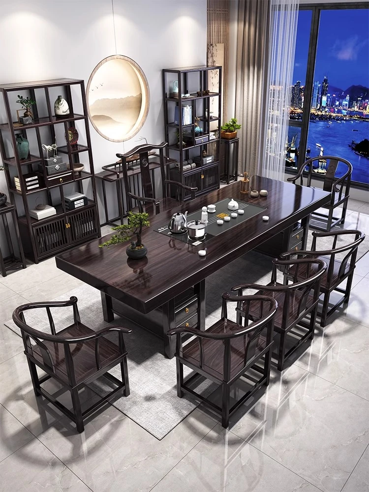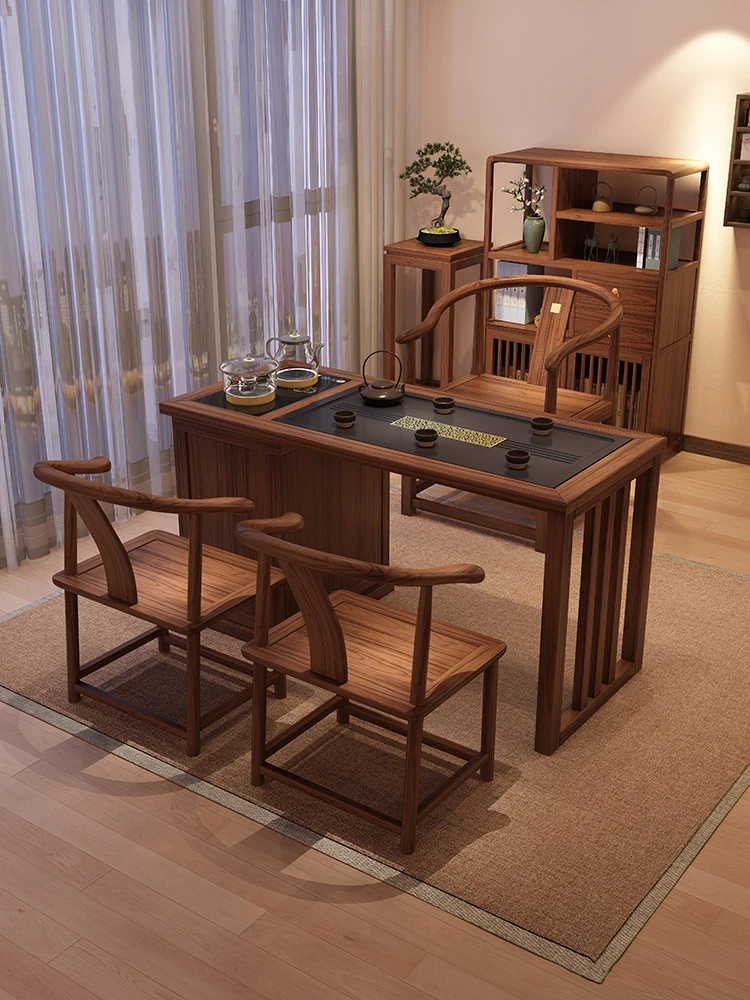 [Oak-Black Walnut] 62.99 in Three-smoking Desk (62.99in*23.62in*29.92in)