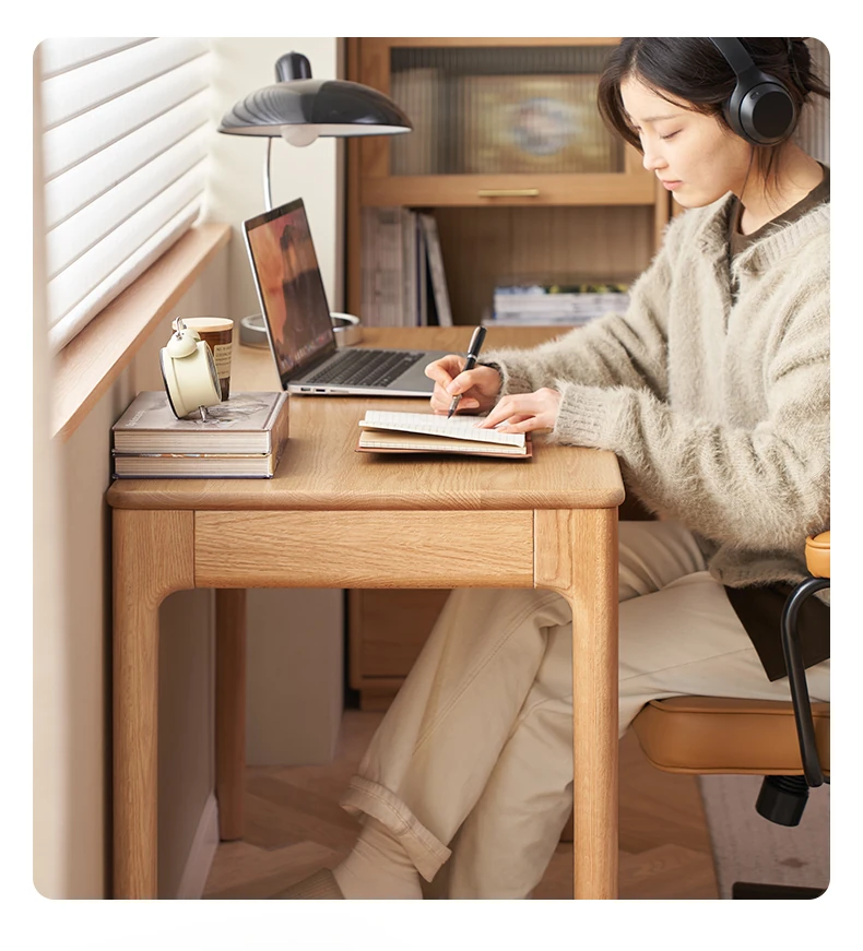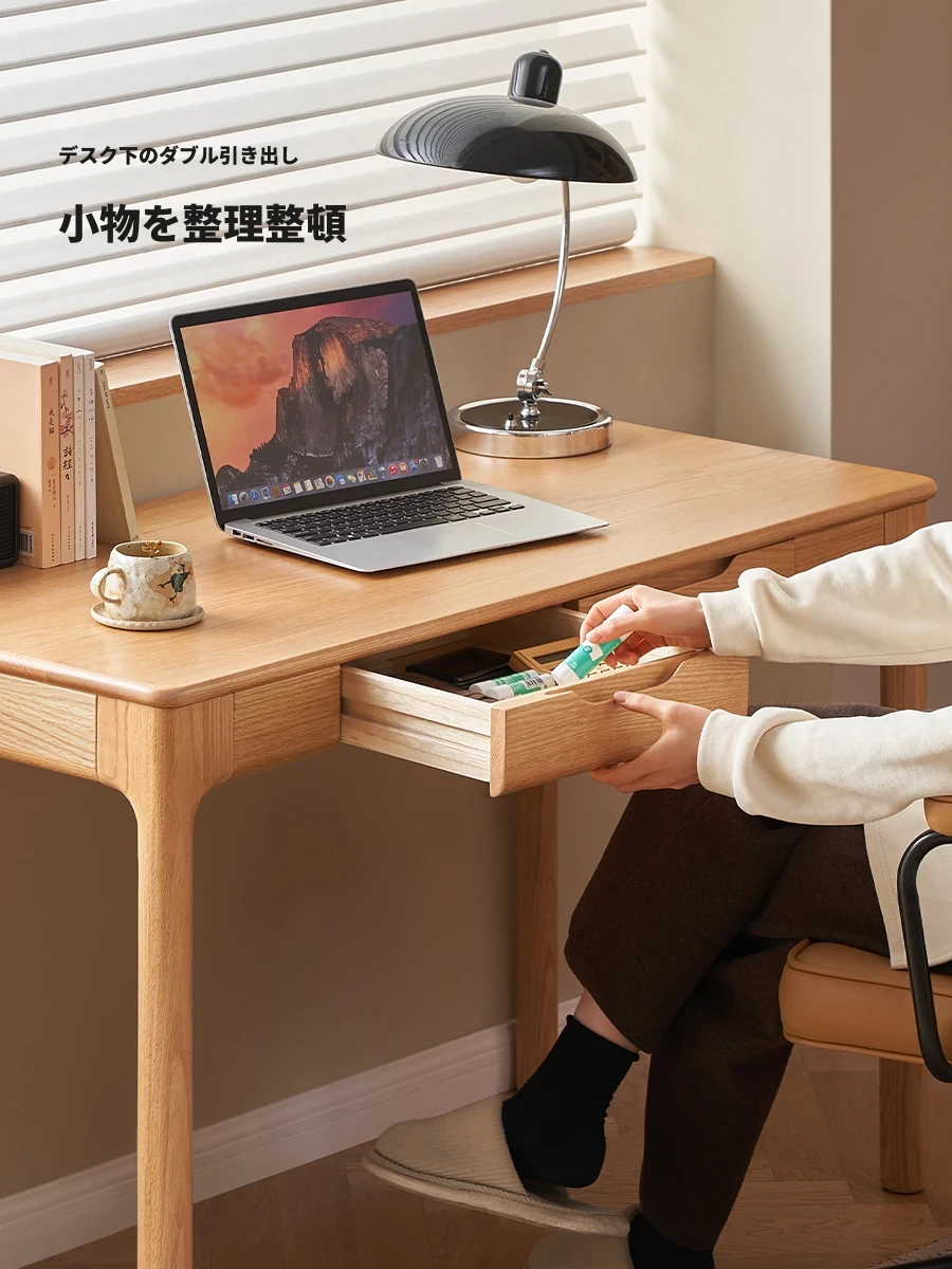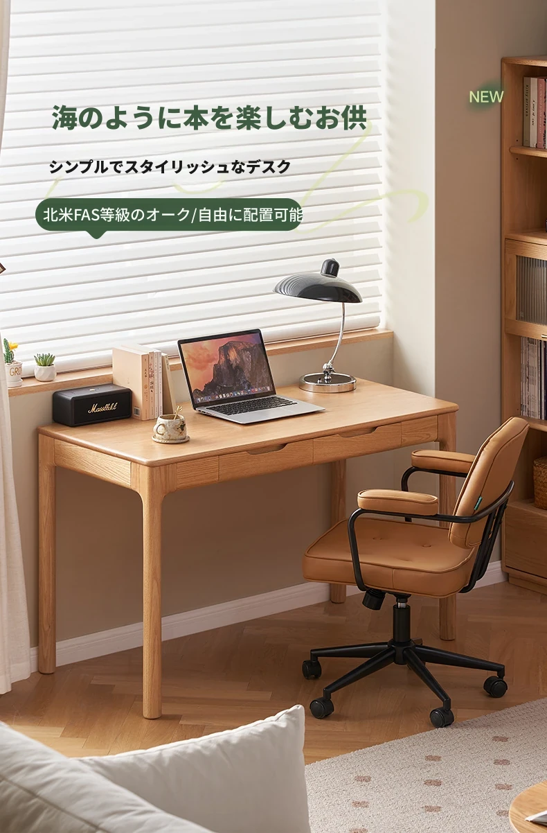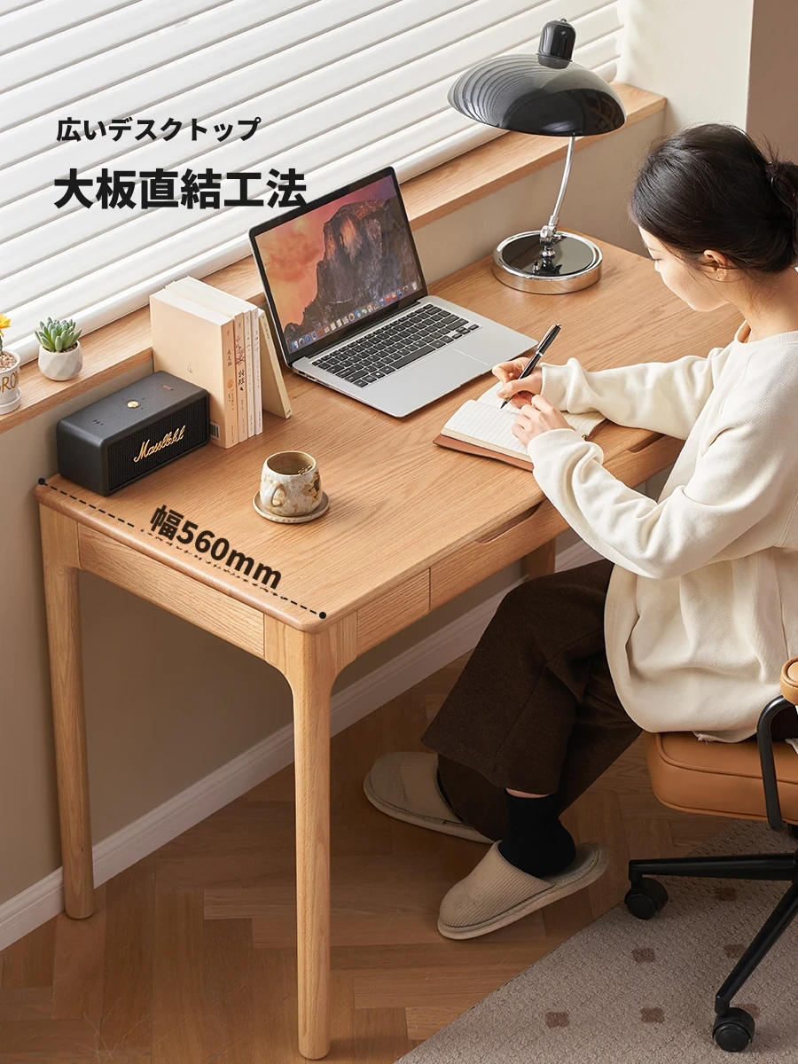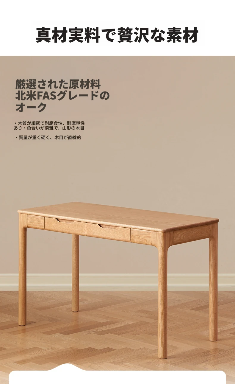 原材料そのまま使用!全無垢オーク製モダンデザイン書道デスク - シンプルで洗練された書斎・オフィス用コンピューターデスク A7161