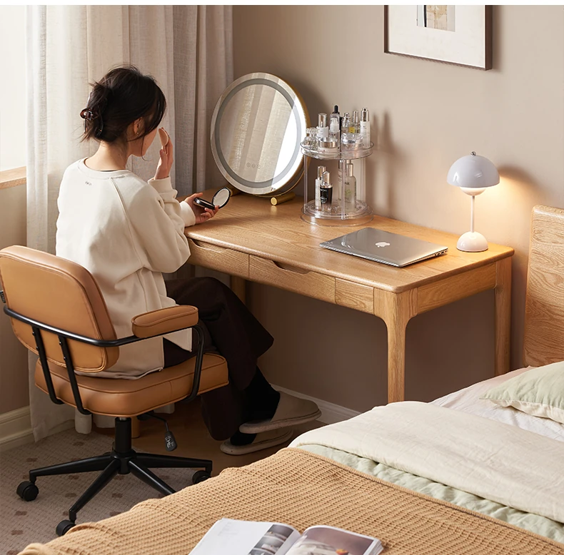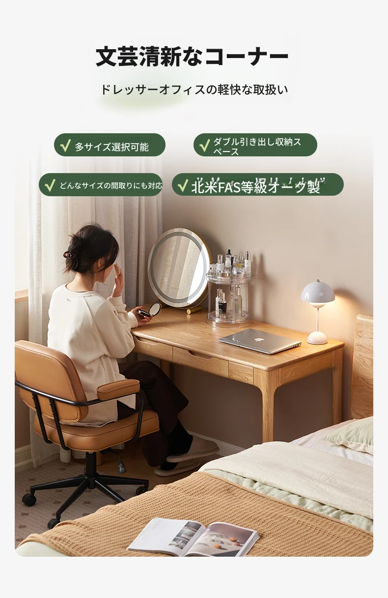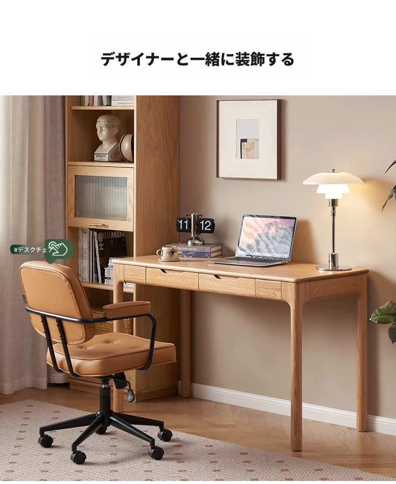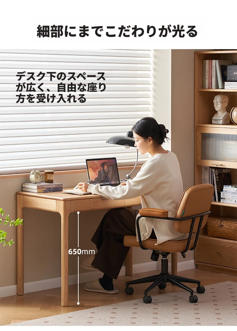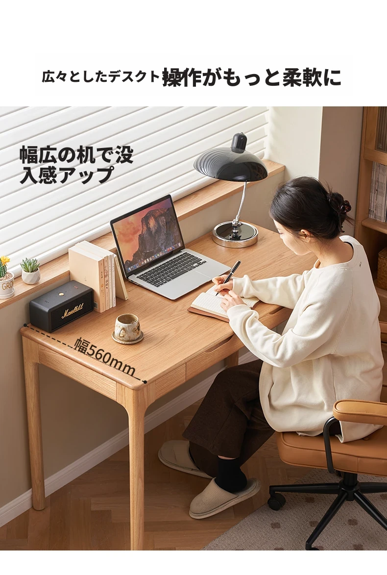 原材料そのまま使用!全無垢オーク製モダンデザイン書道デスク - シンプルで洗練された書斎・オフィス用コンピューターデスク A7161