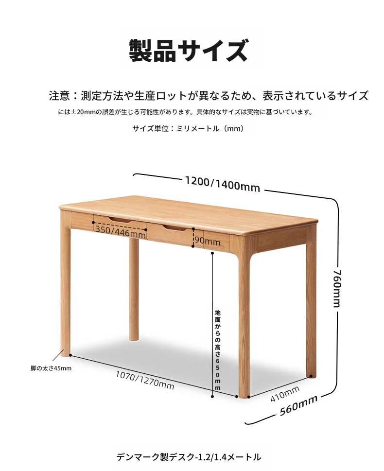【オーク-ナチュラル色】1.4メートル ダブルドロワーデスク(1400*560*760mm)